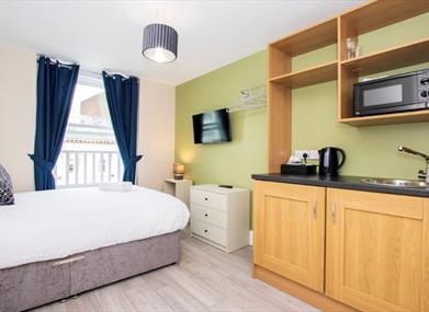 14 high quality bedrooms each with own kitchenette including microwaves for those guests who prefer an ‘alternative’ stay to that of a traditional hotel.