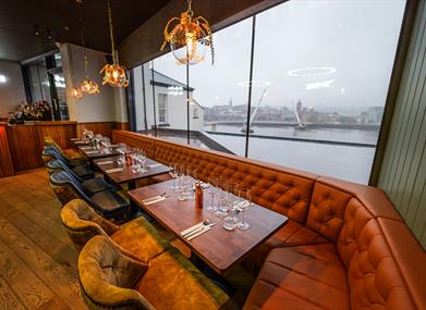 The best of locally sourced produce, presented without complication, matched with sumptuous cocktails, wines and drinks. With modern décor, large covered heated outdoor spaces and panoramic views of the Foyle and city there is something for everyone at Stitch & Weave.