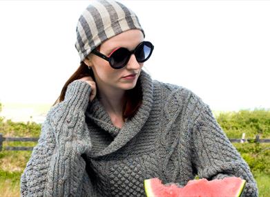 Edel MacBride is an Irish designer with awards for both creative knitwear collections and socially responsible entrepreneurship. Working only with locally spun and dyed wools, Edels work is available to purchase locally at Number 19 Craft and Design, The Craft Village. As a textile maker, her studio mission is to maintain and educate audiences in the story and skills of traditional Irish knitwear, especially aran.