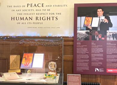 A special collection of the world-renowned peace accolades awarded to the late John Hume. The collection includes the 1998 Nobel Peace Prize, jointly awarded to John Hume and Sir David Trimble for their role in the Northern Ireland peace process, the Martin Luther King Jnr Non-Violent Prize bestowed in 1999, and the Mahatma Gandhi Peace Prize, awarded in 2001.