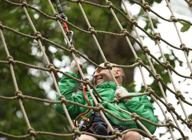 Our Tree Trek Aventure was designed with the family in mind, you can either harness up and join in or cheer on from the forest floor. With a plethora of varied high rope adventures this unique course has ancient 200- year-old Oak trees, streams, river views and a Via Ferrata section making this is a one of a kind experience. Unleash your inner wildness and get the blood pumping in Ireland's premier high ropes course. Let us inspire you to challenge yourself in our fierce and stunning terrain.