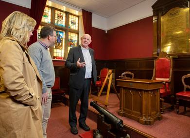 Following the guided tour of the museum, visitors will be invited to explore the meeting rooms of the various orders that use the Memorial Hall. The hall is the only venue that has rooms dedicated to each of these historical and cultural organisations. Visitors will hear a brief history of the orders and their purpose and relevance today. This will include the Orange Institution, the Ladies Orange Order and the Royal Black Preceptory. There will be an opportunity to listen to an explanation about the stained-glass windows in the Apprentice Boys Meeting Room, the portraits of past Governors, the history of the Memorial Hall and an exclusive opportunity to take home a photograph sitting in the Governor’s Chair. Participants will understand the relevance of the two main processions organised by the Apprentice Boys Association to commemorate the Siege. The Relief of Londonderry parade on the 2nd Saturday in August and the Shutting of the Gates Parade on the 1st Saturday in December.
