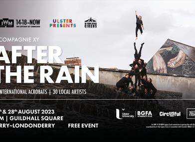 The world premiere of AFTER THE RAIN, a specially commissioned production featuring globally acclaimed French circus collective Compagnie XY accompanied by a 50 plus strong local ensemble of musicians, choirs and local acrobats will be taking place at 3pm on Sunday 27 and Monday 28 August in the Guildhall Square in Derry~Londonderry.