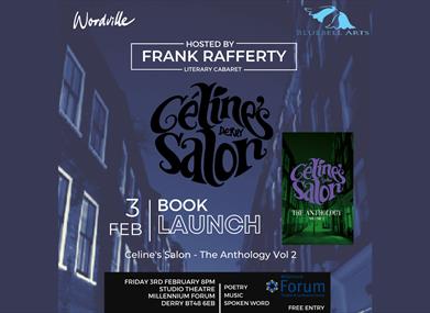 In 2022, Celine’s Salon took to the road, staging events in Derry, Tenby, Glasgow and London. To celebrate the writers who took part in that literary road trip, Celine’s Salon – The Anthology Volume 2 is published by Wordville Press. The book’s Irish launch event will be held in Derry’s Millennium Forum Studio Theatre where the audience will enjoy performances from some of the anthology’s contributors.