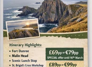 A scenic coastal journey to Fort Dunree and Malin Head, with a traditional St Brigid's Cross workshop included.