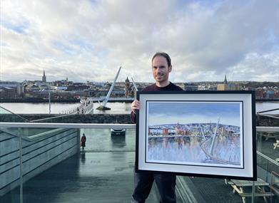 This new body of work draws inspiration primarily from the landmarks and landscapes of Derry City, Donegal, and the North Coast. Featuring vibrant interpretations of the Peace Bridge, the Guildhall, and Shipquay Street, alongside evocative portrayals of Inishowen, Errigal, Marble Hill, Downings, Glenveagh, Downhill, Portrush, and Portstewart, the exhibition offers a compelling exploration of place. The artist will be present throughout the exhibition and will be happy to discuss the works on display, as well as ideas for new commissioned pieces.