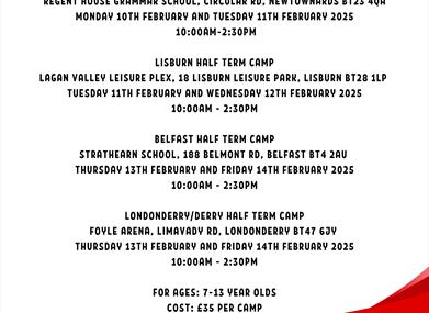 Our Half Term Camps are for 7-13 year olds and will cost £35